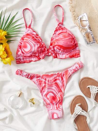 Fluid Pattern Knot Front Summer Beach Bikini Set - Multicolor - View 1