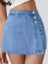 Casual American Streetwear Style Light Wash Denim Mini Skirt For Women, Summer