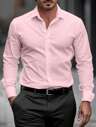 Manfinity Mode Men's Fashion Casual Business Commuting Men's Stand-Up Collar Solid Color Button Long Sleeve Shirt, Men's Formal Shirt, Men's Solid Color Shirt. Suitable For Daily Wear, Commuting To Work, Going Out, Party, Can Be Paired With Suit Pants Or Suit Suits To Attend Parties, Weddings, Honeymoon Scenes. Can Be Given As A Gift To Sons, Husbands, Boyfriends, Fathers, For Fall, Old Money Style