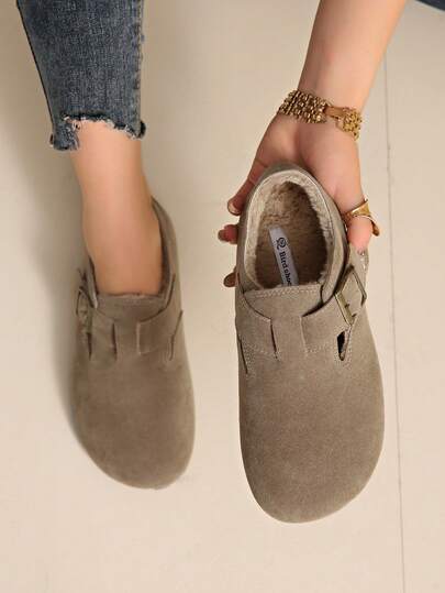 New Autumn Fashion Loafer Mule Slippers,Fur Shoes - Khaki - View 1