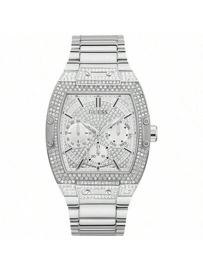 Guess Phoenix GW0094G3 Crystal Multifunctional Quartz Watch For Men, Black Stainless Steel Strap, Barrel-Shaped Dial, Luxury Wristwatch, Suitable For Daily Street Style And Business Wear, Fashionable Gift For Men, Ideal For Boyfriend/Boyfriend - Silver - View 1