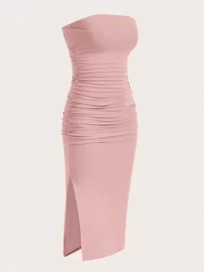 SHEIN EZwear Plus Size Pink Strapless Dress, Vacation Style For Spring And Summer - Pink - View 1