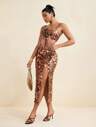 SHAQUITA GARCIA Women's Sexy Sheer Mesh Printed One Shoulder Sleeveless Slim Fit Multi-Layered Long Dress Designer