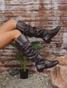 Fall/Winter 2025 New Black Knee-High Boots Short Tube Nude Ankle Boots Square Toe Retro Knight Boots Women Chunky Heel Thick Bottom Waterproof Platform Skinny Mid-Calf Long Boots Stretch Boots With Plush