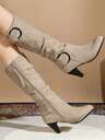 Elegant & Stylish Women's Comfortable Slip-On Knee-High Boots, Round Toe, Chunky Heel, Pleated Design, Plus Size, New Autumn/Winter 2025 Collection