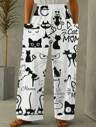 Women's Casual Pocket Printed Straight Leg Pants, Versatile Plus Size Trousers For Autumn/Winter, Christmas