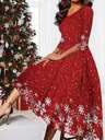 Christmas Elegant Casual Versatile Women's Thin Round Neck Long Sleeve T-Shirt With Christmas Tree Print, Suitable For Daily, Party, Holiday, Vacation, Office Wear, Autumn/Winter