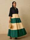 Travachic Plus Size Women V-Neck Flare Sleeve Striped Casual Dress Resort Dresses For Women Color Block Dress Juneteenth Outfits For Women Fall Clothes