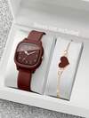 2pcs/Set Women's Silicone Watch With Square Dial & Elegant Quartz Wristwatch + Heart-Shaped Bracelet, No Watch Box Included