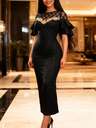 Seksowna, damska sukienka bez rękawów z dekoltem w serek i frędzlami w kolorze czarnym, do połowy łydki, idealna na wesela, dla gości weselnych, wieczory panieńskie, wakacje, urodziny, ukończenia szkół, gale, powroty do domu i sylwestra
