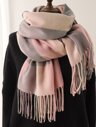 1 szt. Jesienno-zimowy damski elegancki, wielokolorowy, w kratę, w paski, żakardowy, sztuczny kaszmirowy szalik/szal, z frędzlami, unisex, zimowy, ciepły, swobodny, gruby, stylowy szalik na sukienkę