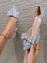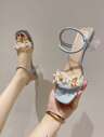 Nowe letnie damskie sandały na wysokim obcasie z kryształkami, antypoślizgowe i błyszczące buty wyjściowe na ramiączkach