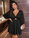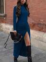 EARO damska długa sukienka obcisła z rozcięciem, wysokiej jakości elegancka, uniwersalna, swobodna, dzianinowa mini sukienka z golfem i długim rękawem, dopasowana, obcisła, marszczona sukienka koktajlowa z krótkim rękawem