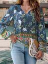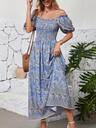 Sukienka z dekoltem w serek i rękawami typu latarnia, z graficznym wzorem, modna