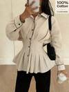 Pariaura Bluzka z kołnierzykiem koszulowym, nowa na rok 2025, długi rękaw z falbaniastym wykończeniem i wiązaniem, kontrastowy panel z falbanką, prosty, codzienny element garderoby do pracy