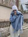 1 szt. Jednokolorowy, ciepły szalik z wzorem makaroników, damski, dzianinowy, gruby szal z frędzlami, odpowiedni do podróży i aktywności na świeżym powietrzu, codzienny zimowy ocieplacz na szyję, można dopasować do sukienek
