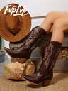 FVPFVP Jesienno-zimowe buty kowbojskie Caro Tusi Western, vintage'owe, haftowane, wysokie, pustynne buty do jazdy konnej, nowość na wiosnę/jesień 2025, kowbojki