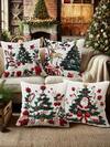 Zestaw 4 poduszek dekoracyjnych na Boże Narodzenie z 1 lub 4 elementami – nowoczesny nadruk z bałwanem, Świętym Mikołajem, reniferem i ostrokrzewem, 18 x 18 cali | Zapięcie na zamek błyskawiczny | Wytrzymały materiał poliestrowy | Nadaje się do salonów, pokoi, sof i sypialni (bez wypełnienia) Idealny na świąteczne dekoracje i przyjęcia