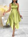 Vestido feminino pequeno, cor sólida, assimétrico, com babados, design franzido, sem mangas, elegante, charmoso, com fenda, para festa, namoro, festa de solteiro, jantar formal ou evento de gala, dia dos namorados