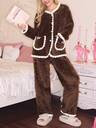 SweetSlumber Conjunto de pijama casual plus size com estampa de coração de cereja, gola contrastante e mangas compridas.