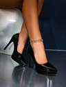 Sapato feminino preto elegante, impermeável, com plataforma, bico fino e tiras cruzadas, ideal para festas e férias. Versátil.