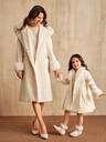 Anewsta Palton elegant de toamnă/iarnă, unic, cu guler din blană artificială și tiv evazat, stil slăbire
