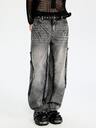 Breakform Blugi casual largi, de damă, stil gotic vintage, cu denim închis, spălați la culoare