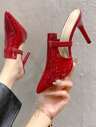Sandale cu toc stiletto și vârf ascuțit, cu fundă și strasuri, primăvară/vară 2025, sexy și elegante pentru rochii, tocuri cu talpă roșie