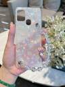 1 husă pentru căști cu sclipici minimalist, transparent și decorați cu cireșe