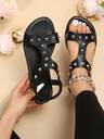 Sandale sport cu platformă pentru femei, cu nituri și decupaj, talpă groasă, închidere reglabilă cu velcro, toc plat confortabil, vârf deschis, culori solide: negru, alb, albastru, violet, bleumarin, gri
