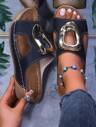 Sandale plate, negru/maro, lucrate manual pentru femei, șlapi cu inel pentru degete, papuci anti-alunecare pentru exterior și interior