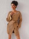 MIRENZI Salopetă din amestec de in, cu decolteu în V, mâneci scurte, cu picior larg, cu curea detașabilă, vară și toamnă, pentru femei