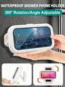 Suport telefon duș impermeabil rotativ la 360°, husă telefon duș, extensibilă, unghi reglabil, husă de protecție anti-aburire de înaltă sensibilitate, potrivită pentru peretele băii, oglindă, cadă, bucătărie, cutie telefon ecran tactil impermeabilă pentru baie, cutie suport telefon ecran tactil montată pe perete fără găurire