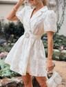 Simplee Bluză din bumbac cu mâneci bufante, stil universitar, culoare solidă, cu guler, ținute de profesor pentru femei, pentru întoarcerea la școală