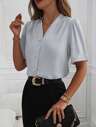 Cămașă de damă cu decolteu în V, formă liberă de vară, bluză cardigan elegantă casual de afaceri, culoarea fluturelui, top versatil de înaltă calitate, subțire și drăguț, stil coreean, mărime mare, se recomandă comandarea cu o mărime mai mică.