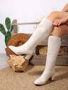 Cizme înalte kaki cu toc gros din piele întoarsă, cizme largi, cizme până la genunchi cu toc înalt noi 2025, cizme înalte maro