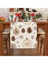 1 set de fețe de masă din in cu tematică de Crăciun, dotate cu globuri de Crăciun, lumânări, clopoței, fulgi de zăpadă și decorațiuni florale. Față de masă dreptunghiulară din poliester durabil, potrivită pentru decorarea sărbătorilor rurale, roz elegant, cu o culoare principală și diverse dimensiuni din care puteți alege.