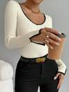 Tricou damă casual slim fit cu guler rotund și mânecă lungă, negru de primăvară