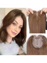 Peruci șic drepte stratificate pentru femei Perucă sintetică 4X1 Perucă din dantelă Păr sintetic moale, capac de plasă trandafiri, culoare mixtă maro negru pentru toate femeile de piele, ușor de coafat, aspect natural, lungime scurtă spre medie