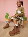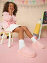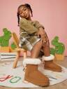 Mini mi #StarryWalk Kids' Pearl & Teddy Charm Decor Fabric Suede Chestnut Braided Collar Platform Clogs –Cozy & Stylish Choice For Little Princess' Winter Days