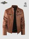 LEDUNTINO Men's Fashion Zipper Casual Outdoor Thick Fleece Motorcycle Leather Jacket, Sports Style, Solid Color, Bomber Jacket, Boyfriend Gift, Men's Autumn/Winter Stand Collar, Motorcycle Style, Textured Shoulders, Windproof, Windbreaker Leather Jacket Spring/Autumn Coat