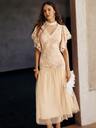 Simplee Women's Elegant Vintage Lace Flared Hem Fitted Long Sleeve Dress, Suitable For Weddings, Parties, Birthday