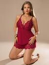 SHEIN Plus Size Solid Color Lace Patchwork Camisole Sleepwear Set