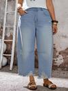EMERY ROSE Plus Size Solid Color Casual Jeans,Summer Outfit For Women,Festival Outfits For Women ,Party,Wedding,Elegant,Casual,Vacation,Business,Women's Plus Size Light Wash Barrel Leg Jeans, Distressed Frayed Hem Cropped Jeans With Pockets For Casual Boho Vacation Outfits,2026 New Y2K Barrel Leg Denim Jeans For Women Plus Size, Light Wash Distressed Frayed Hem Cropped Pants, Casual Vacation Outfit,Elegant Plus Size Light Wash Denim Barrel Pants, Distressed Frayed Hem Cropped Jeans With Pockets For Women's Casual & Weekend Wear