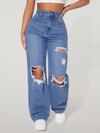 SHEIN PETITE High Waist Ripped Straight Leg Jeans