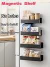 1/2/4 Pcs Magnetic Side Storage Rack Set, Black Wallmount Organizer Rack Without Drilling, Strong Adsorption, Multipurpose Storage Rack For Refrigerator, Washing Machine, Kitchen, Bedroom, Utility Room, Spice Rack, Space Saving, No Installation Required, Adsorption Ready To Use, Home Organization, Kitchen Spice Rack, Bedroom Organizer, Washing Machine Side Rack, Refrigerator Magnetic Storage Rack, Drill-Free Wall Mount Storage Rack, Strong Adsorption Storage Rack