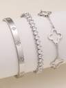 New Flower & Four-Leaf Clover Zirconia Bracelet & Bangle Jewelry Set, Versatile For Women's Daily Wear