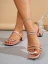 Women's Rhinestone Embellished Pointed Toe Pyramid High Heel Sandals, Sexy Party Summer Brown See-Through Mesh Stiletto Shoes