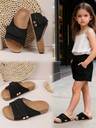 1 Pair Girls Pearl Bow Hook & Loop Gilly Tramp Cloth Flat Cute Princess Sandals, Suitable For Summer