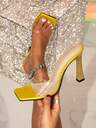 1 Pair Elegant Solid Color High Heel Sandals, Square Toe Stilettos, Fashionable Women Shoes For Outdoor Summer Wear